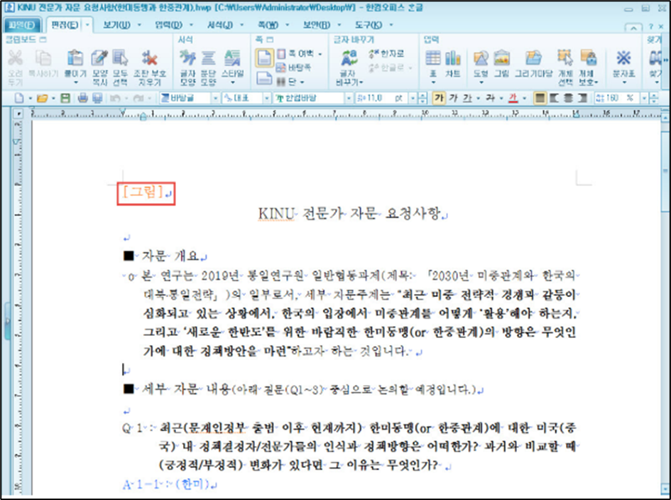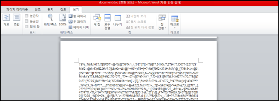 [그림 23]은 한글문서 내에 악성 OLE 개체를 삽입한 뒤, 하얀색 이미지로 숨겨둔 샘플의 예시이다.
