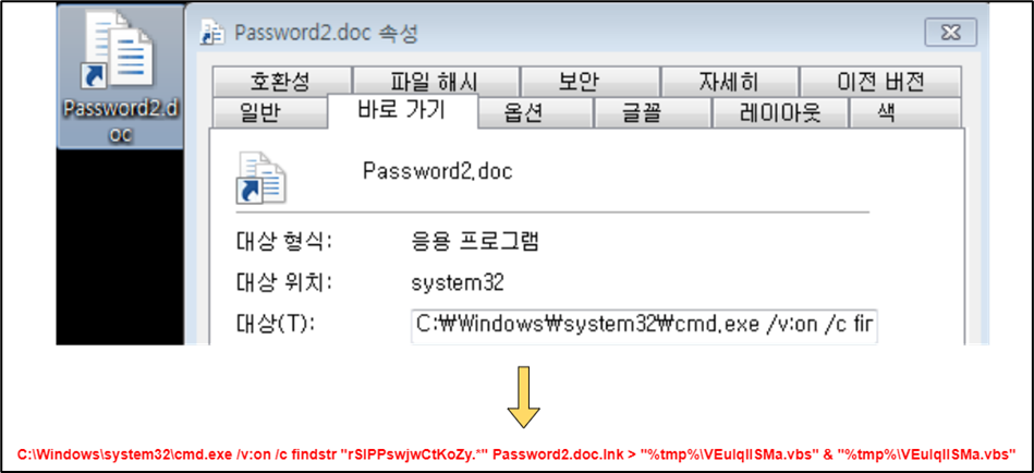 [그림 36]은 아이콘과 파일명을 정상적인 문서인 것처럼 위장하고 있는 LNK 악성코드 샘플이다.