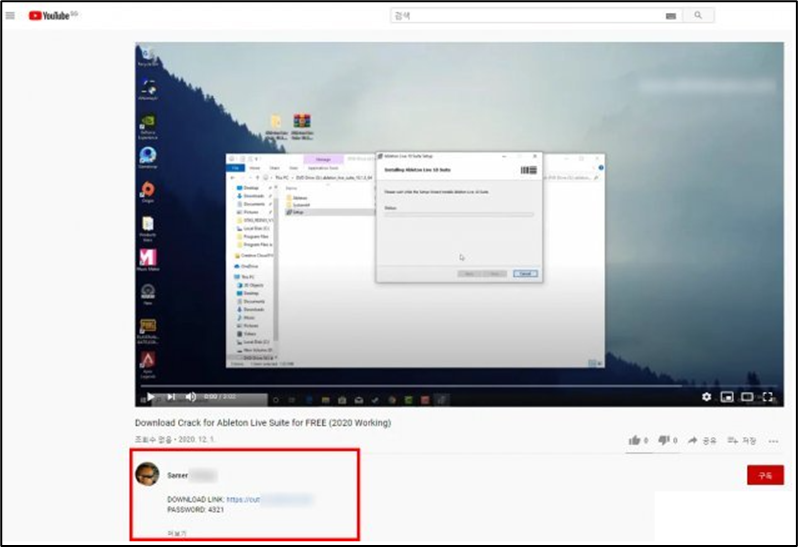 유튜브 역시 악성코드 유포 경로로 활용된다. 이 경우, 신뢰도를 높이기 위해 마치 정상적인 프로그램인 것처럼 가장하기 위한 페이크 영상이 포함되는 경우가 많다.