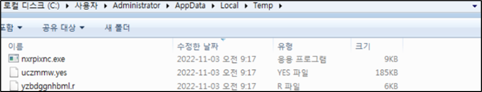 다음은 NSIS 악성코드를 실행했을 때 %TEMP% 경로에 생성된 파일을 확인한 것이다.