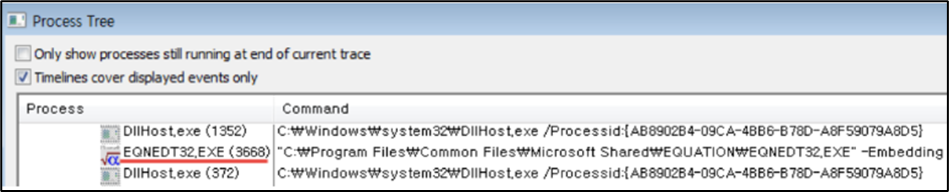 수식이 포함된 문서를 열면 이를 처리하기 위해 수식 편집기(EQNEDT32.EXE)가 실행된다.
