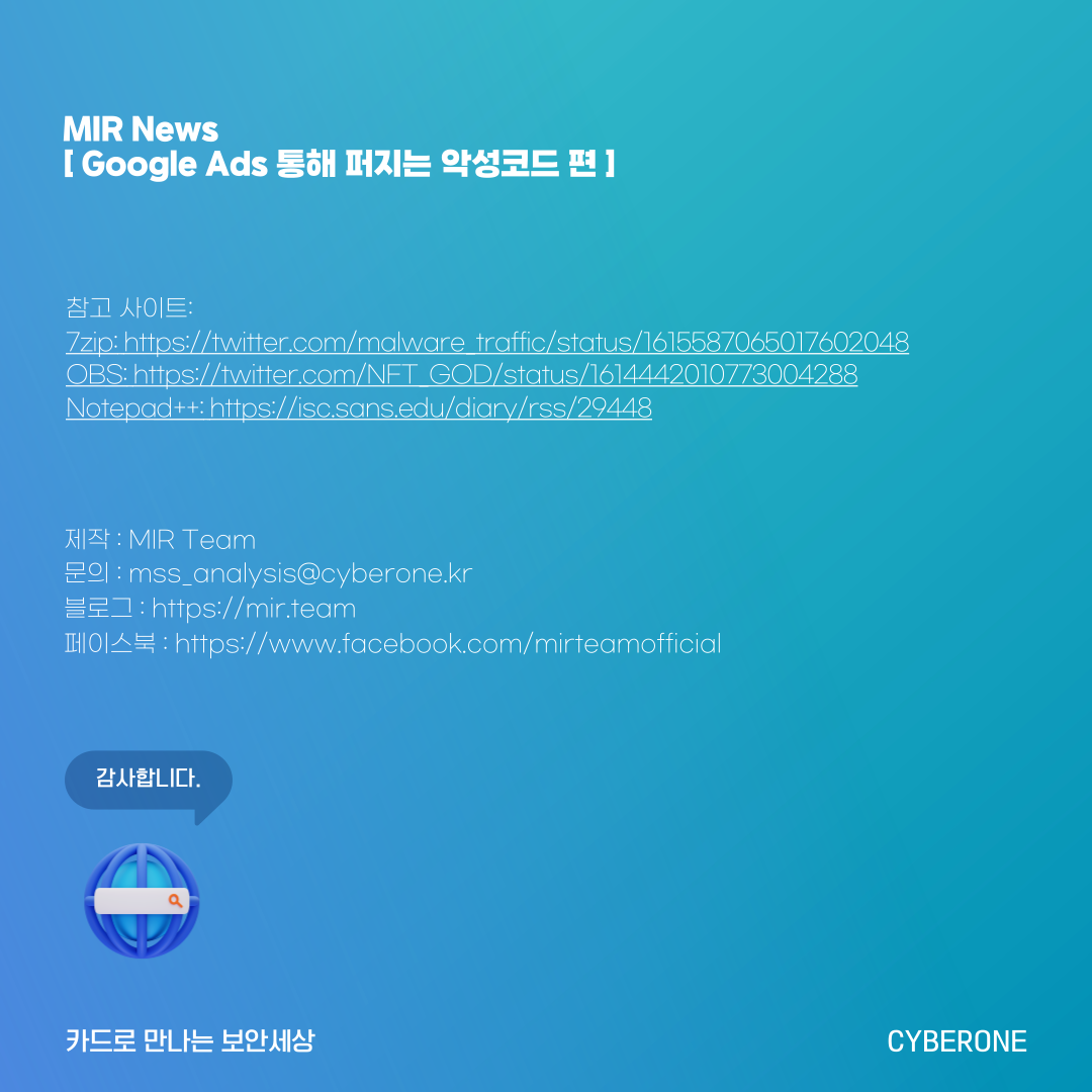 악성코드가 포함된 구글 광고(Google Ads)가 원인이었습니다.