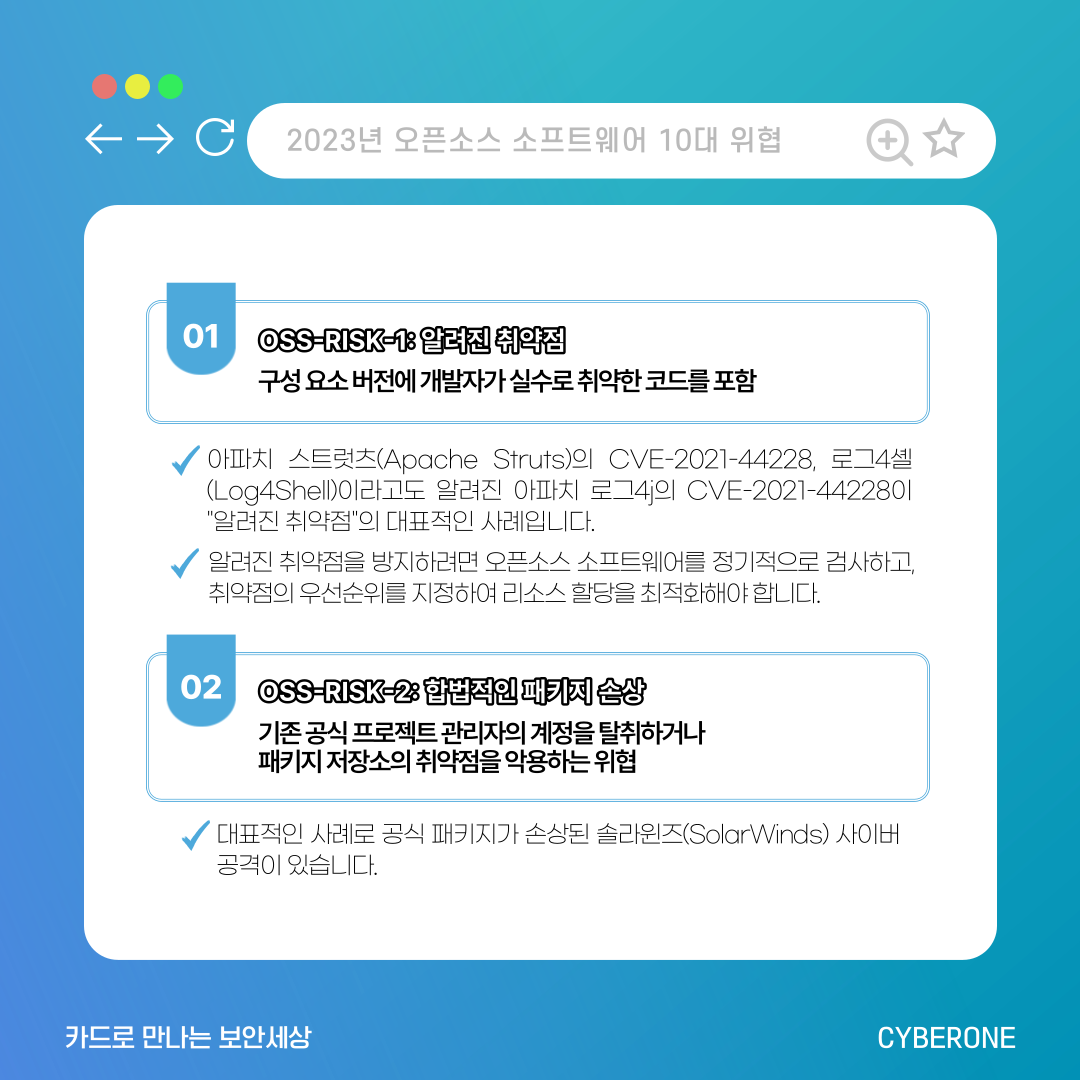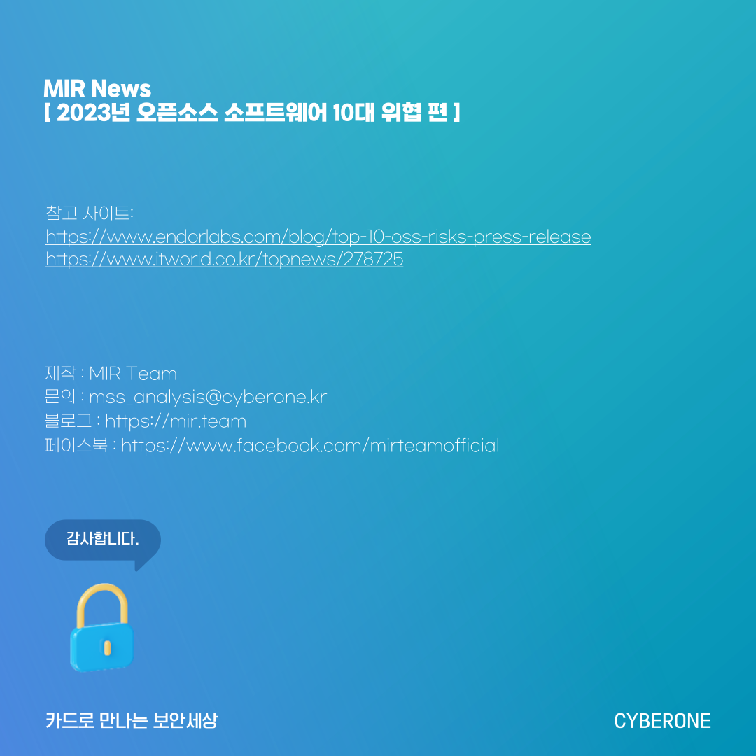 2023년 오픈 소스 소프트웨어(OSS) 10대 위협을 공개했습니다.