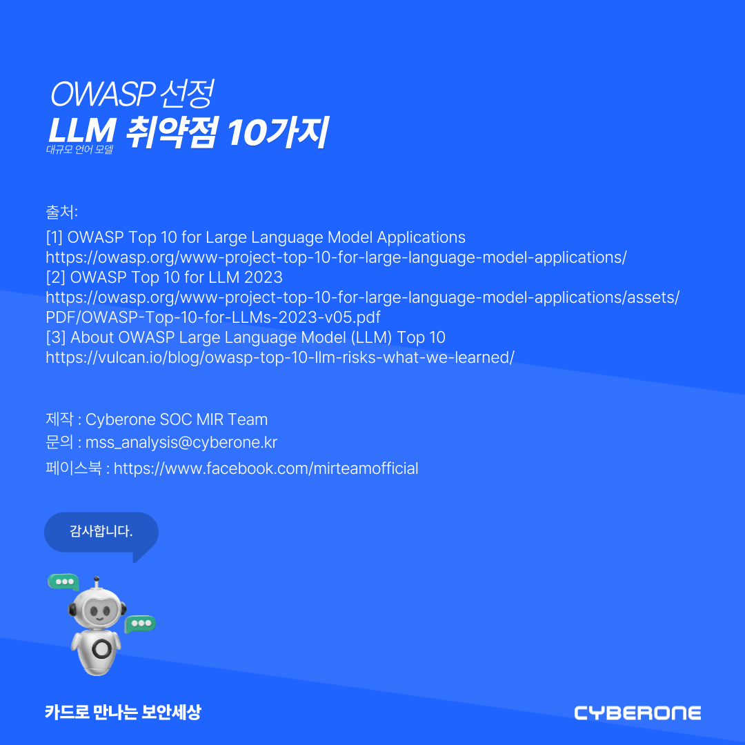 OWASP 선정 LLM(대규모 언어 모델) 취약점 10가지