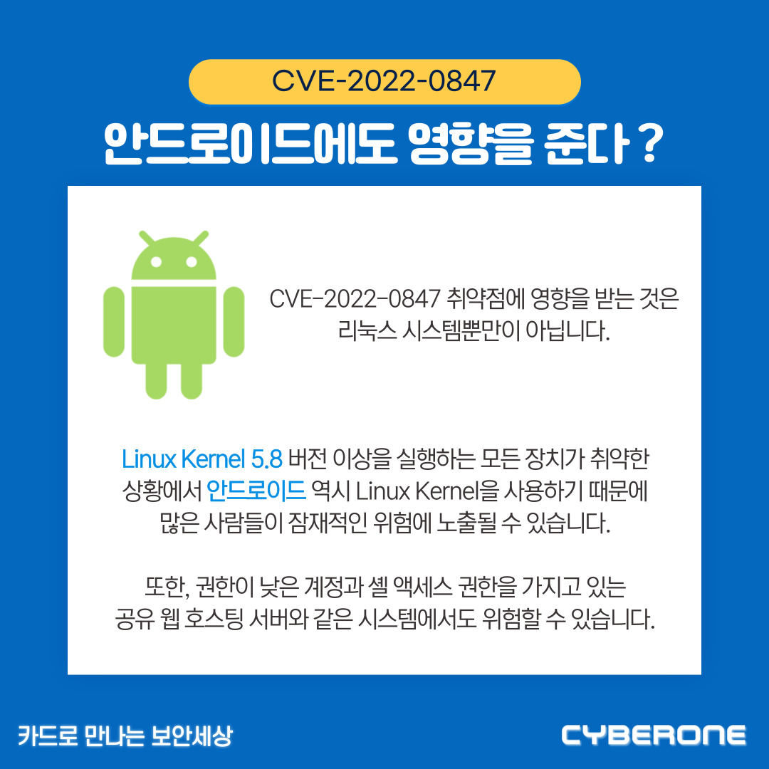 CVE-2022-0847 취약점에 영향을 받는 것은 리눅스 시스템뿐만이 아닙니다.
