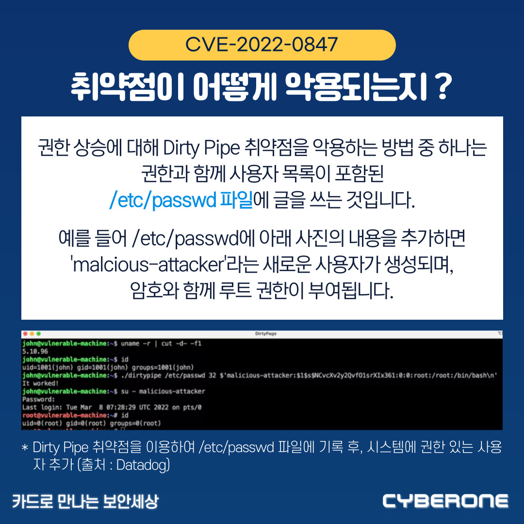 권한 상승에 대해 Dirty Pipe 취약점을 악용하는 방법 중 하나는