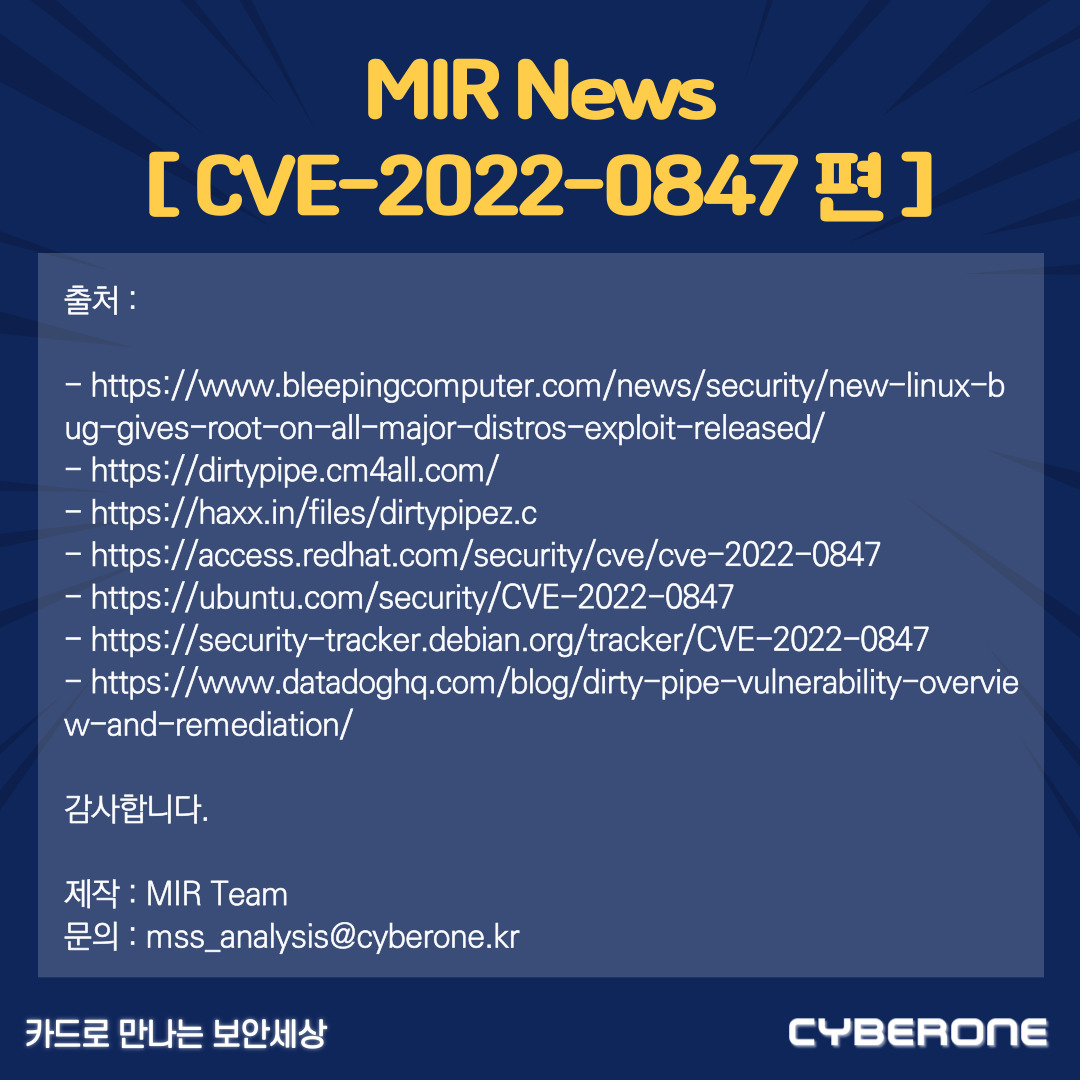 리눅스 커널 로컬 권한 상승 취약점(CVE-2022-0847, Dirty Pipe)에 대해 알아보겠습니다.