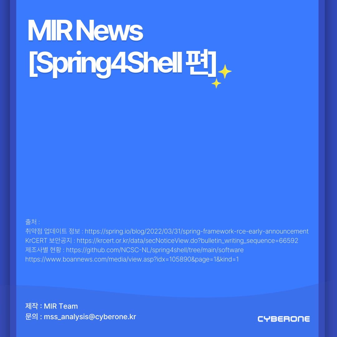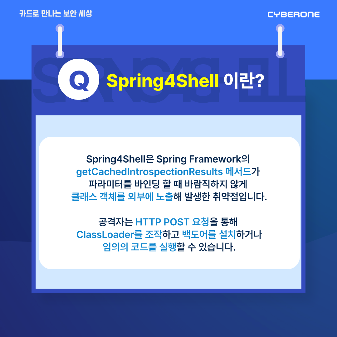 Java Spring에서 Spring4Shell(CVE-2022-22965) 취약점이 발견됐습니다.