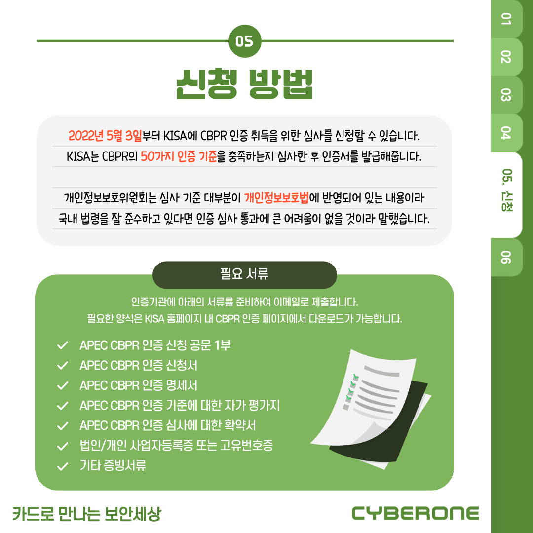 2022년 5월 3일부터 KISA에 CBPR 인증 취득을 위한 심사를 신청할 수 있습니다.