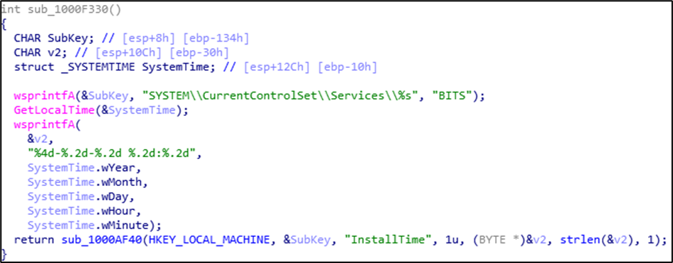 | Key : HKLM\SYSTEM\CurrentControlSet\services\BITS Value : InstallTime |