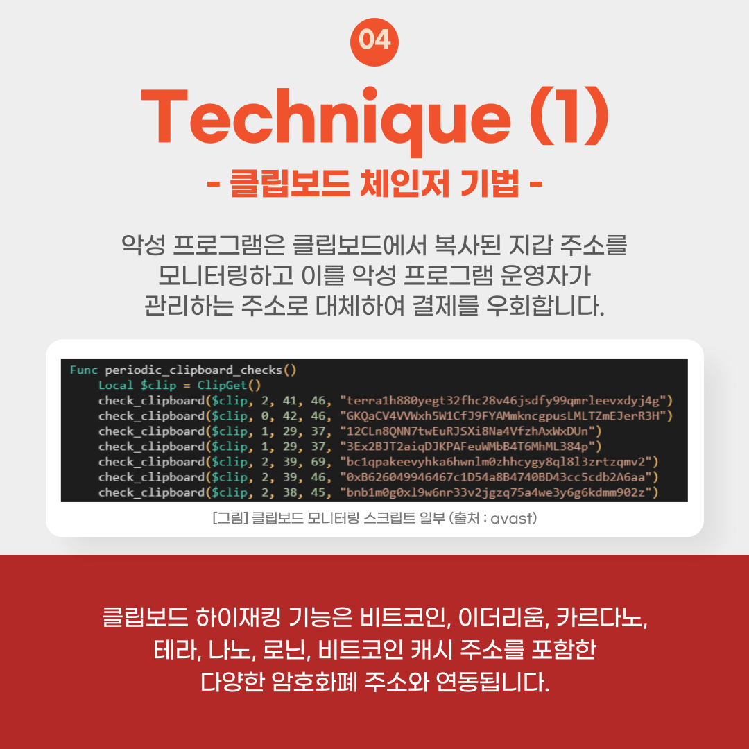 악성 프로그램은 클립보드에서 복사된 지갑 주소를 모니터링하고