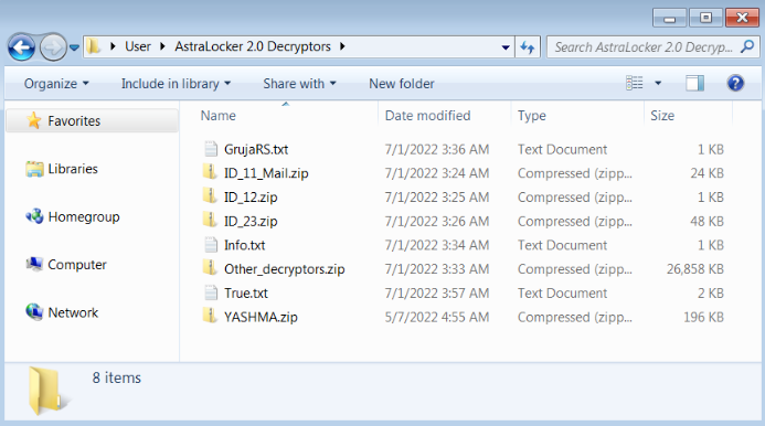 BleepingComputer는 아카이브를 다운로드하여 AstroLocker 랜섬웨어에 의해 암호화된 파일에 대해 암호 해독기 중 하나를 테스트를 진행했습니다.