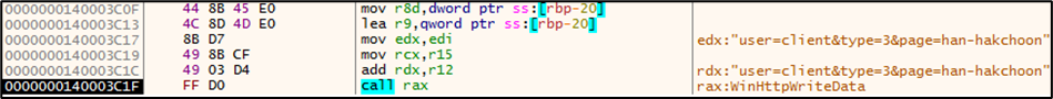 | POST DATA Format (Victim -> C2) | user=client&type=3&page=han-hakchoon user=client&type=1&page=han-hakchoon user=client&type=2&page=han-hakchoon &dat=[RC4 + base64 Encode] |