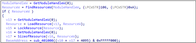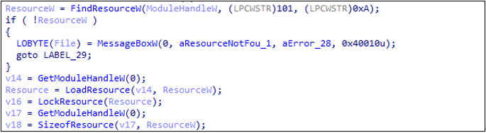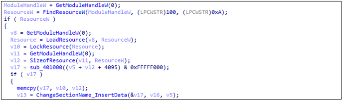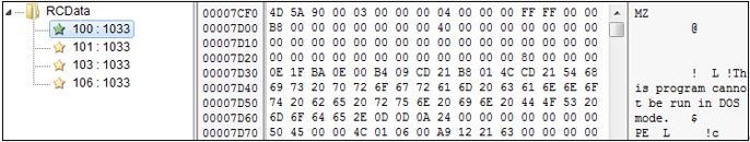 먼저, builder.exe 파일 내부에 존재하는 ID=100인 리소스를 메모리에 로드 한다.