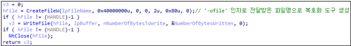 리소스에 대한 작업이 완료되면 최종적으로 “-ofile” 인자로 전달받은 파일명으로 복호화 도구를 생성한다.